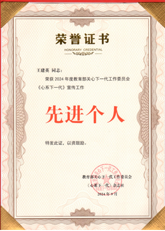 离退处王建英副处长获评 2024年度教育部关工委《心系下一代》宣传工作先进个人