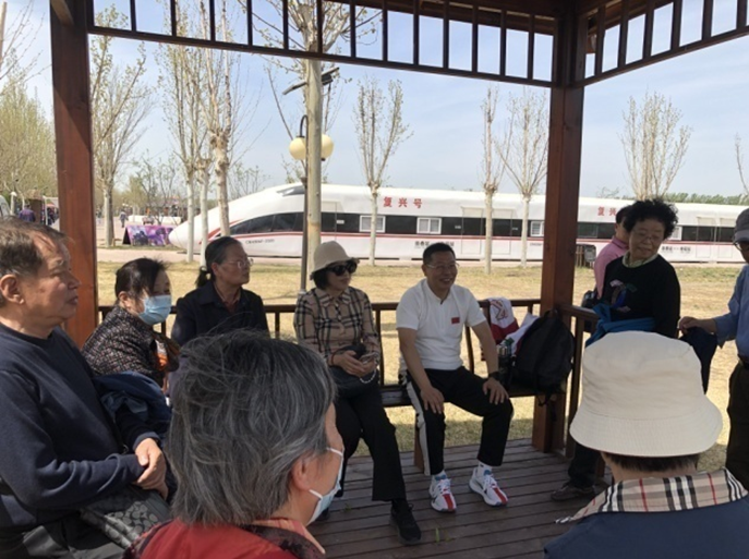 老同志们三三两两结伴而行,欢声笑语中锻炼身体陶冶情操,老朋友、老同事、老伙计们围坐在一起,侃侃而谈,相互问候,互致祝福,共同享受美好春光和大自然的馈赠。