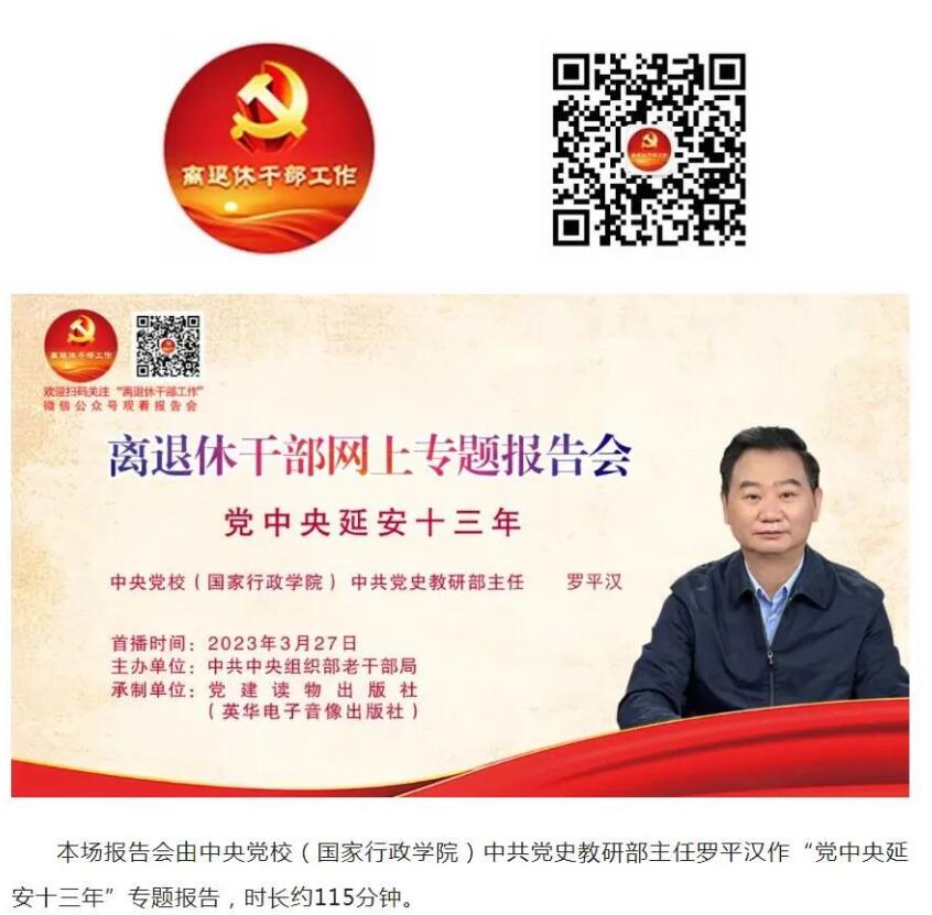 报告会将于3月27日上午9:00,在“离退休干部工作”微信公众号发布,