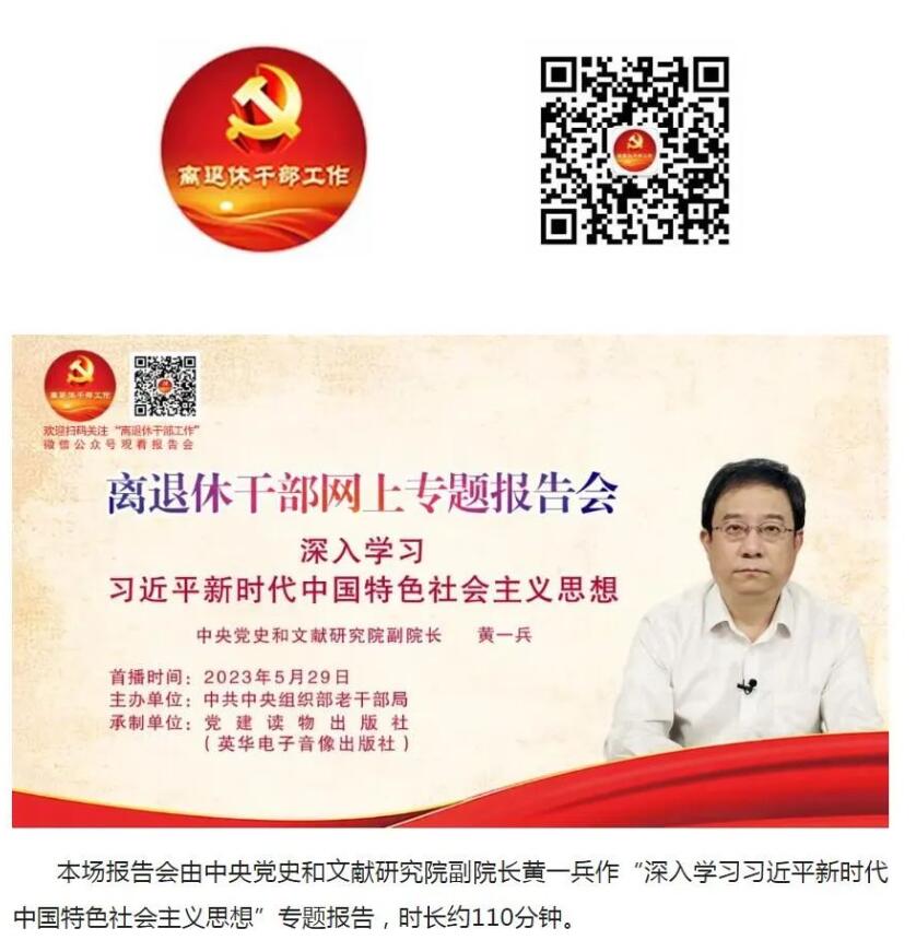 报告会将于5月29日上午9:00,在“离退休干部工作”微信公众号发布,请各二级单位结合实际,组织引导广大离退休干部和老干部工作者在线收看,